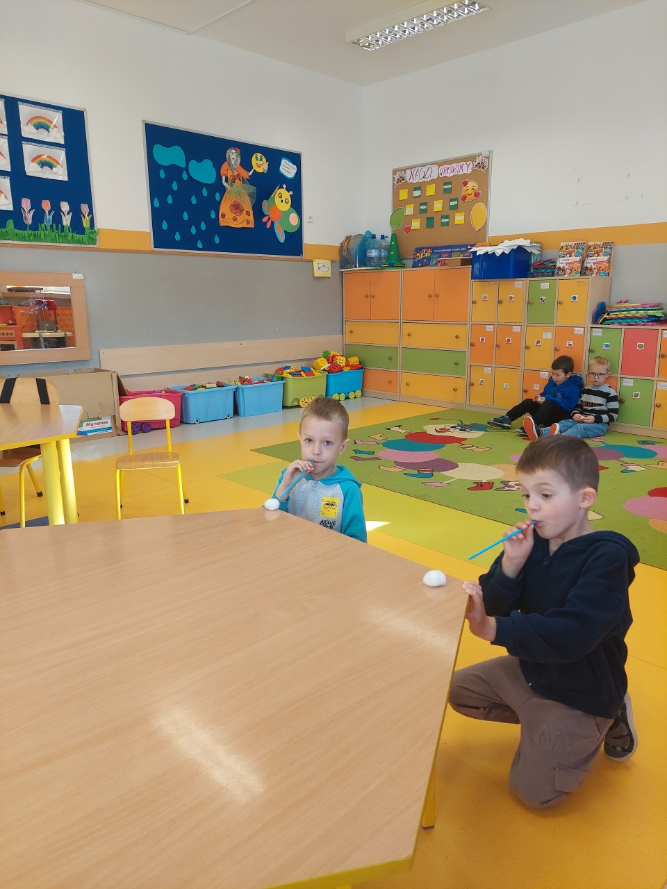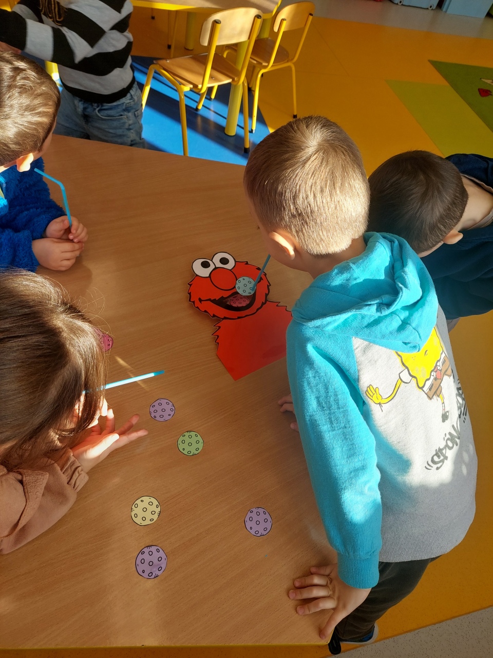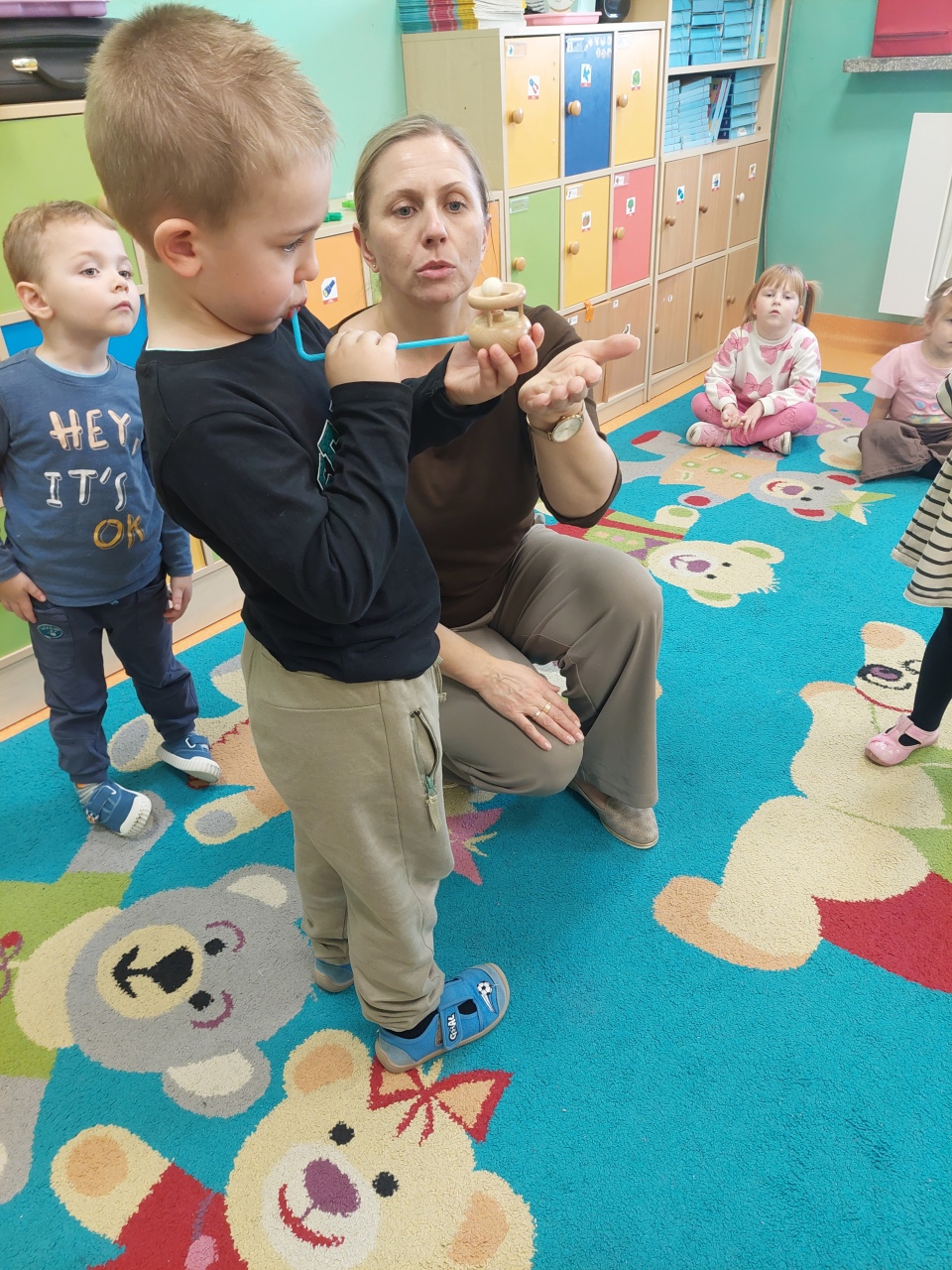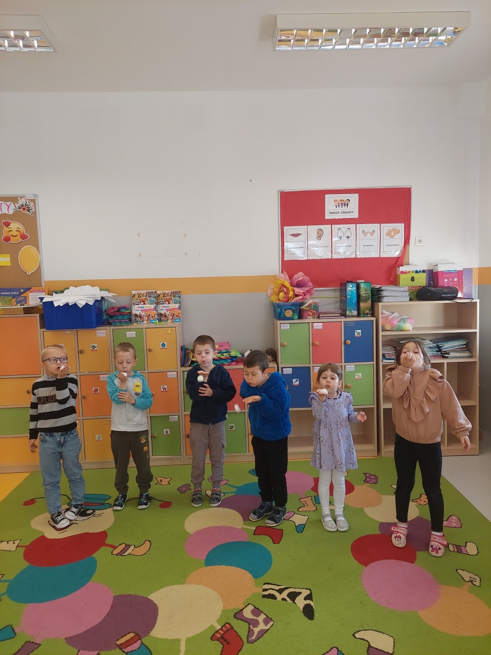 W listopadzie ćwiczyliśmy z dzieciakami w przedszkolu właśnie prawidłowy oddech, napięcie mięśni, które wpływają na normatywne oddychanie, a przy tym… świetnie się bawiliśmy, bo oddychanie można- jak widać- ćwiczyć na przeróżne różne sposoby.