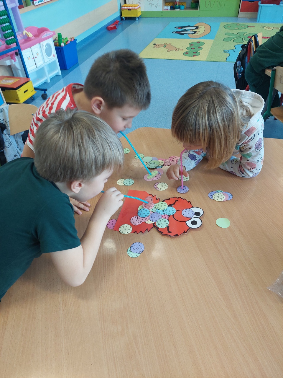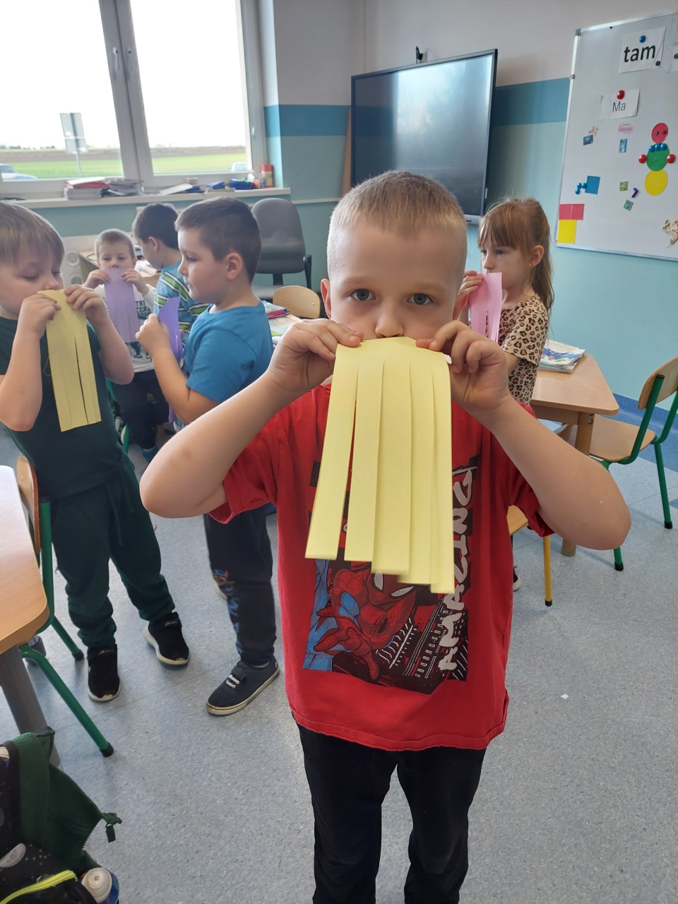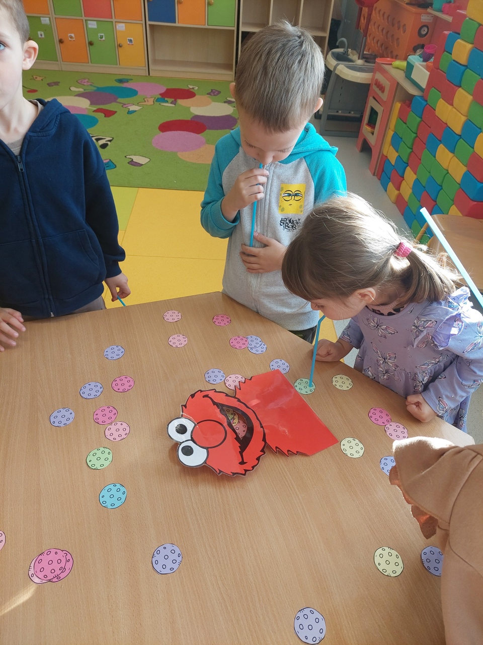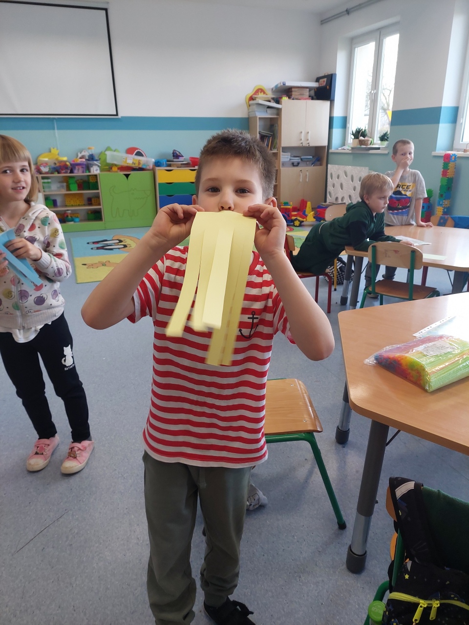 W listopadzie ćwiczyliśmy z dzieciakami w przedszkolu właśnie prawidłowy oddech, napięcie mięśni, które wpływają na normatywne oddychanie, a przy tym… świetnie się bawiliśmy, bo oddychanie można- jak widać- ćwiczyć na przeróżne różne sposoby.
