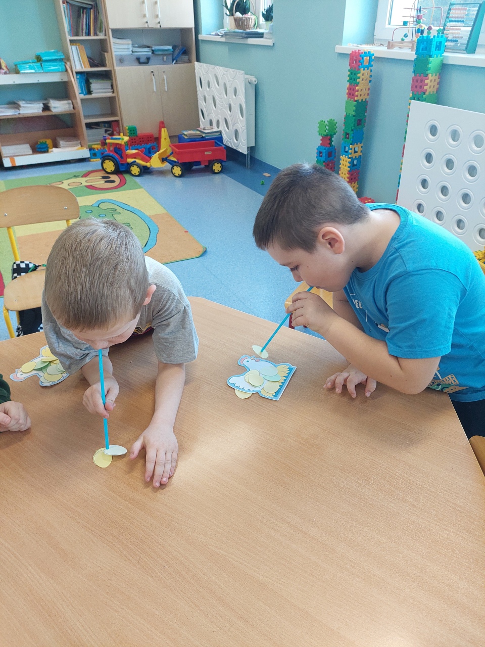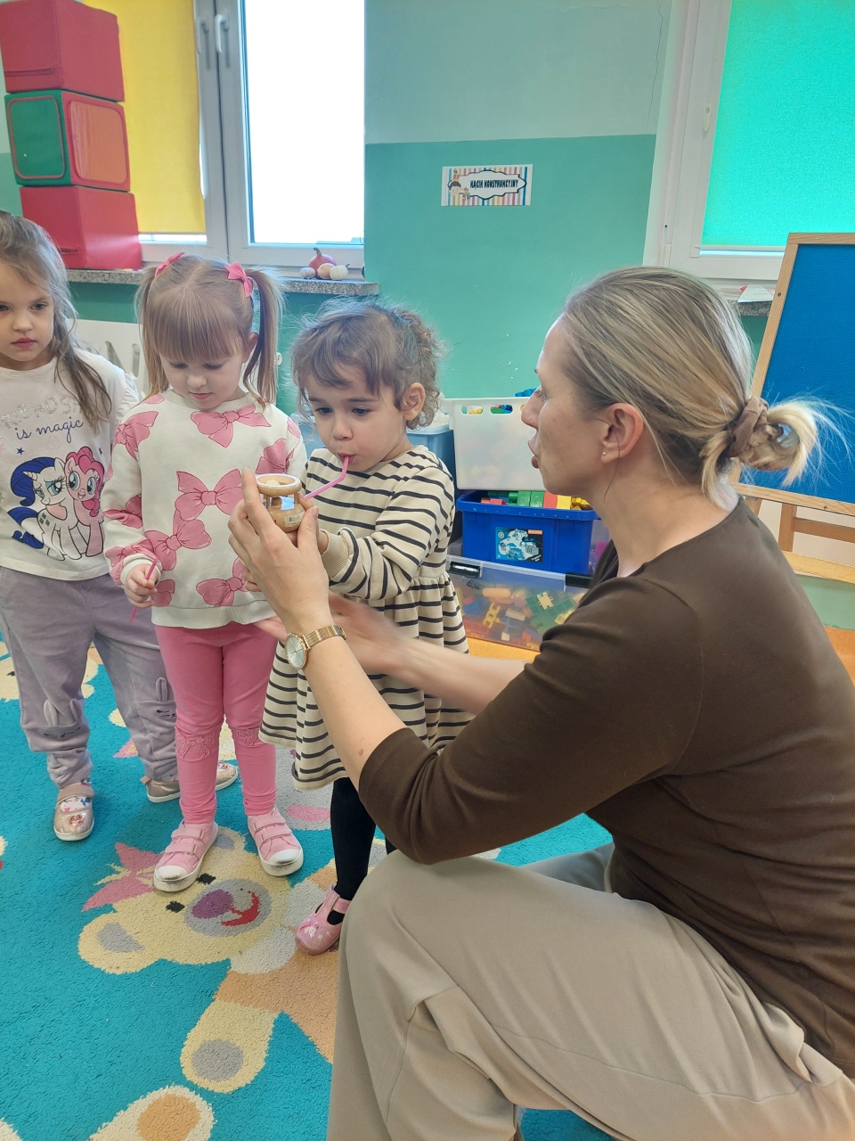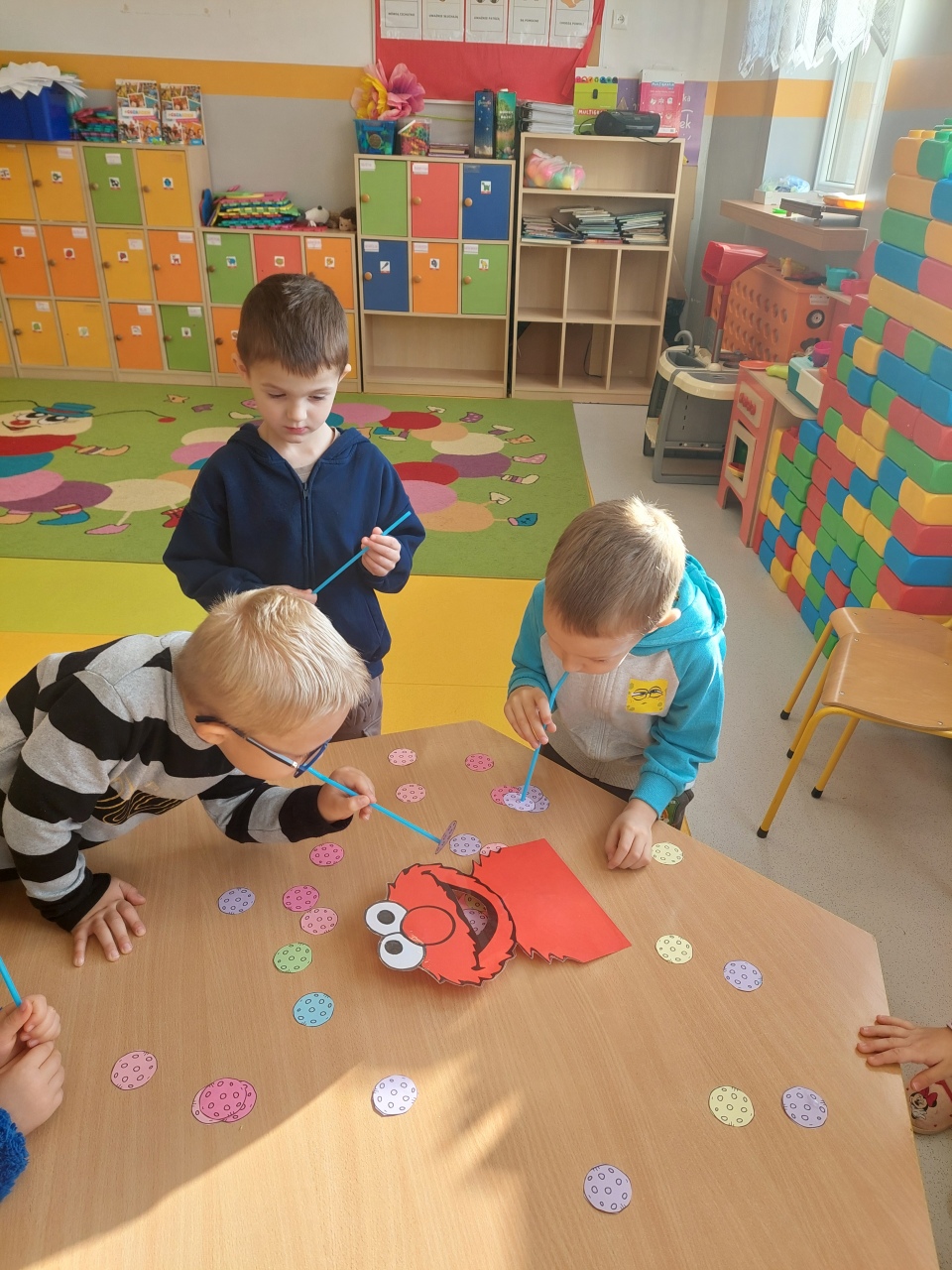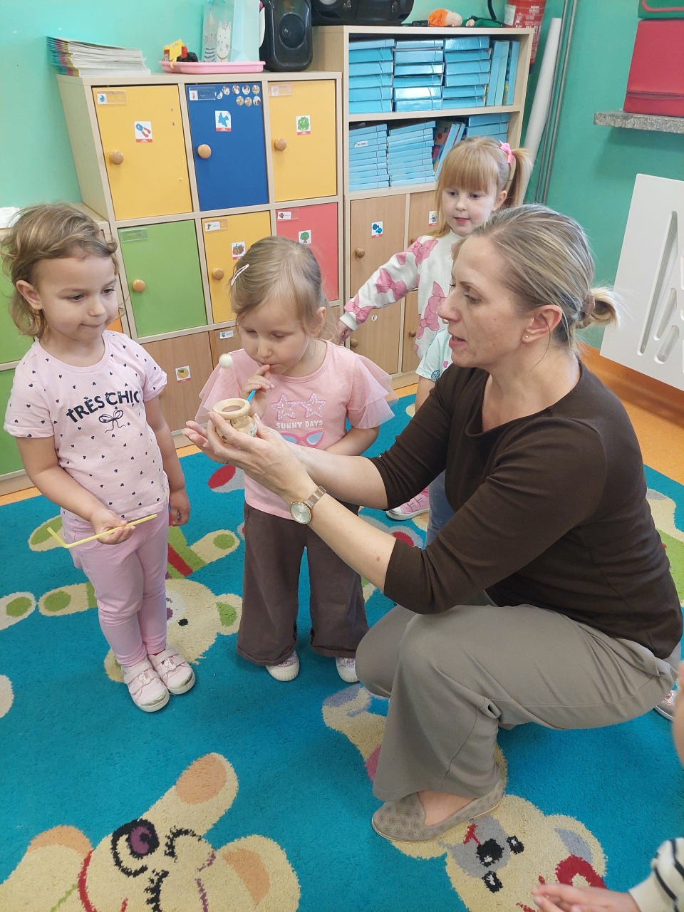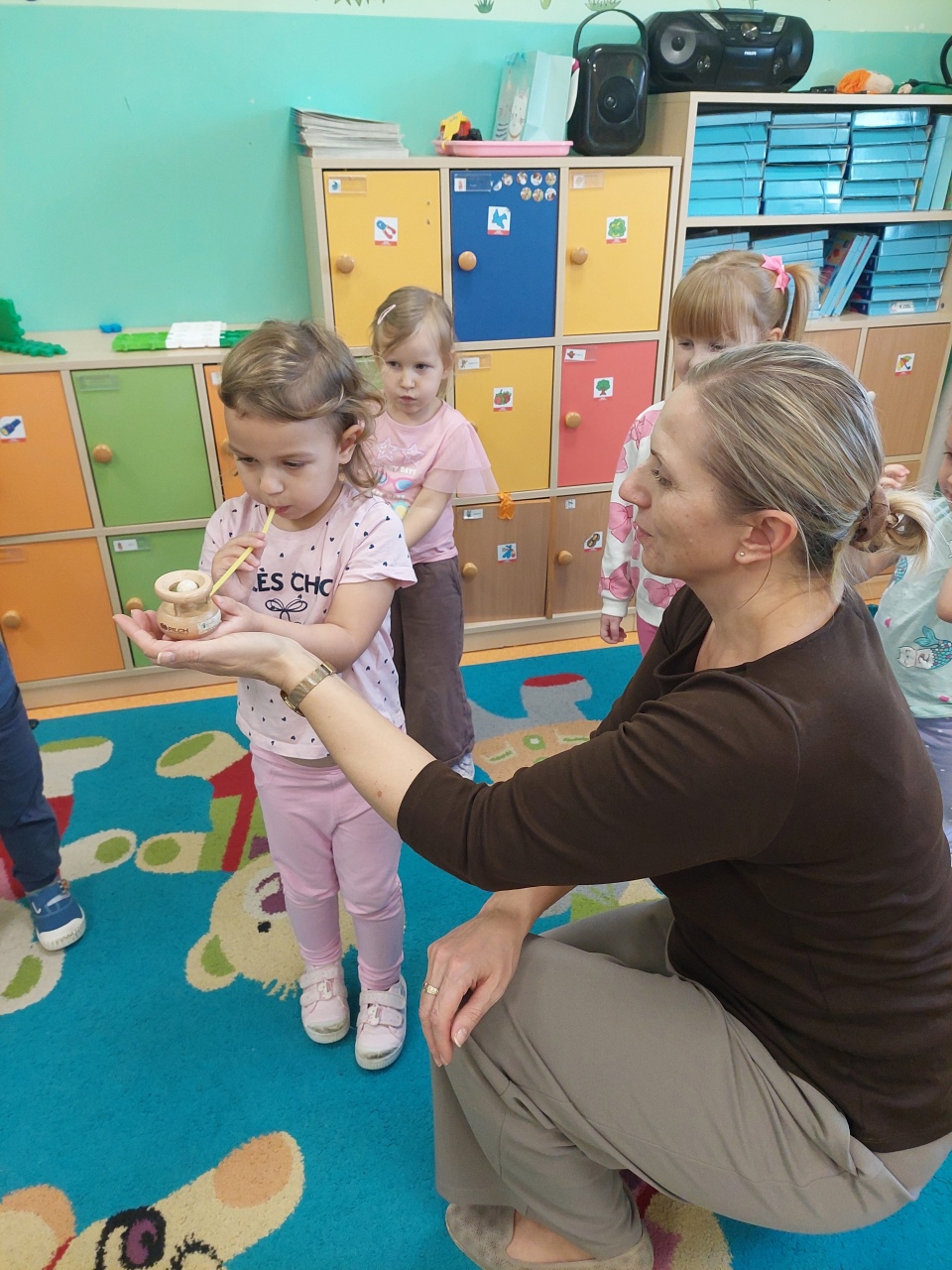 W listopadzie ćwiczyliśmy z dzieciakami w przedszkolu właśnie prawidłowy oddech, napięcie mięśni, które wpływają na normatywne oddychanie, a przy tym… świetnie się bawiliśmy, bo oddychanie można- jak widać- ćwiczyć na przeróżne różne sposoby.