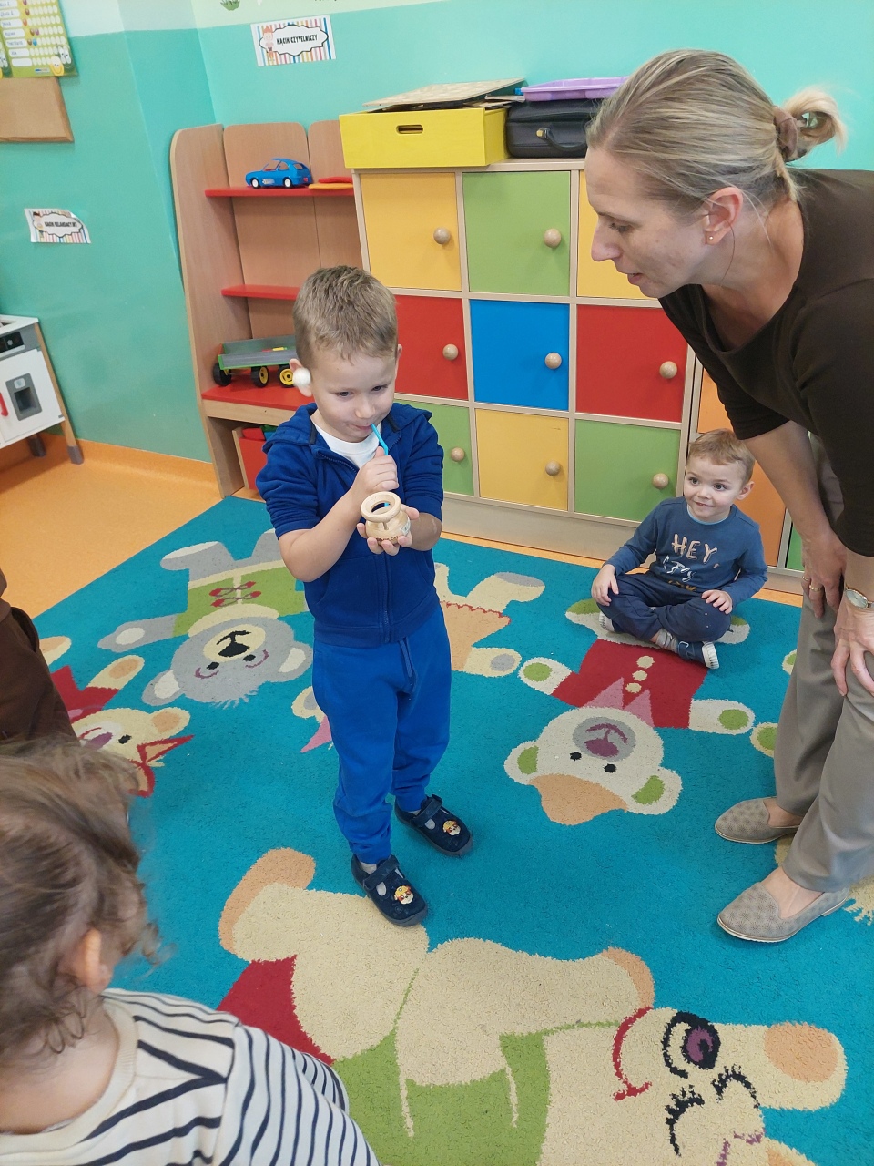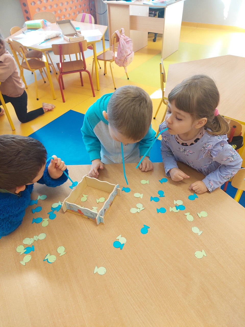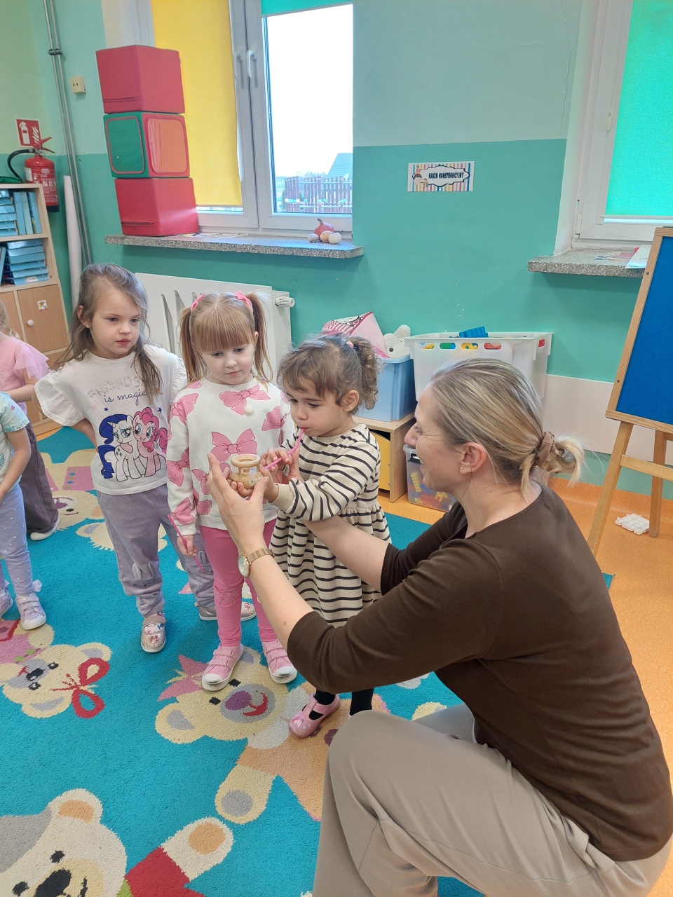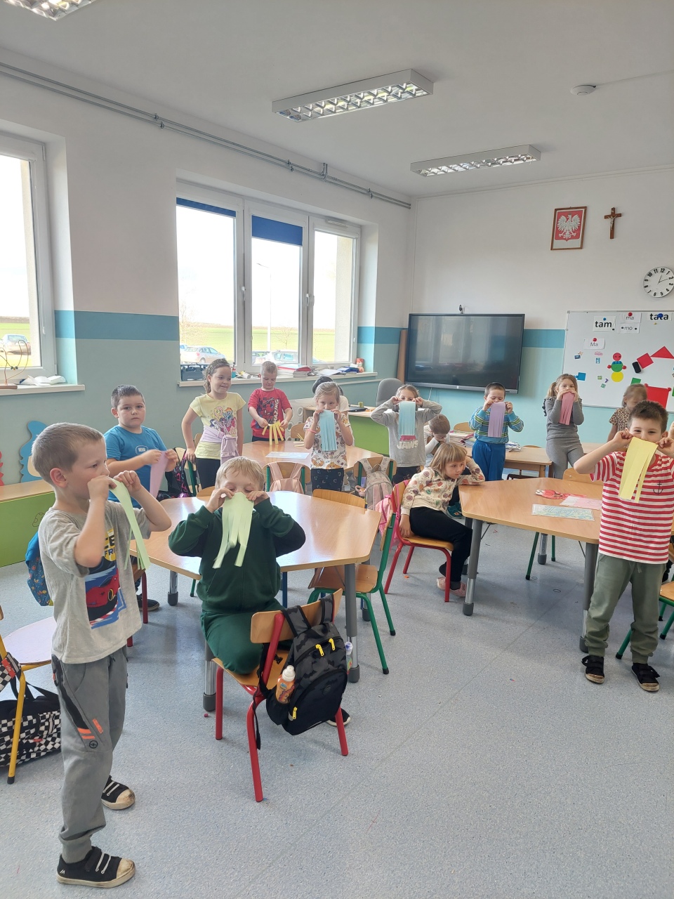 W listopadzie ćwiczyliśmy z dzieciakami w przedszkolu właśnie prawidłowy oddech, napięcie mięśni, które wpływają na normatywne oddychanie, a przy tym… świetnie się bawiliśmy, bo oddychanie można- jak widać- ćwiczyć na przeróżne różne sposoby.