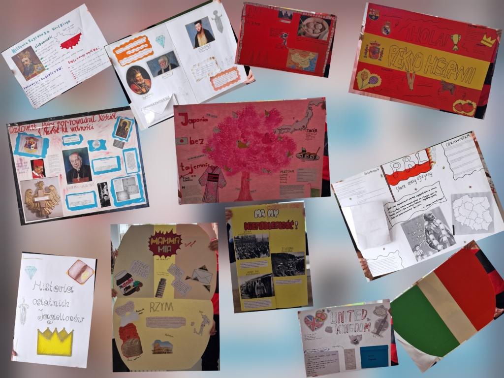 We wrześniu pojawił się pomysł projektu edukacyjnego, którego celem było zachęcenie młodzieży do czytelnictwa, zainspirowanie uczniów do działania na temat przeczytanych książek wybranych samodzielnie w bibliotece szkolnej. Uczniowie klas VII i uczeń kl. VIIIA chętnie przystąpili do działania. Na podstawie serii książek podróżniczych uczniowie kl. VIIB zabrali nas w podróż po krajach Europy i Azji, pracowali nad projektem: “Książka jako brama do nowego miejsca”. Na lekcjach języka polskiego stworzyli interesujące plakaty o osobliwościach Hiszpanii, Włoch, Anglii, Japonii i Chin. Uczniowie kl. VIIA na podstawie serii książek dotyczących historii Polski zaprezentowali na lekcji języka polskiego w formie plakatów najciekawsze wydarzenia z historii naszej ojczyzny: czasy króla Kazimierza Wielkiego, panowanie Zygmunta Augusta – ostatniego króla z dynastii Jagiellonów, Józef Piłsudski – ojciec niepodległości i czasy PRL-u.