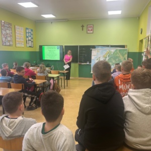 Podczas zajęć dzieci uczyły się, jak prawidłowo segregować odpady oraz oszczędzać wodę i energię. Dzięki połączeniu nauki z zabawą trzecioklasiści z dużym zaangażowaniem poznawali zasady dbania o przyrodę w naszej okolicy. Takie inicjatywy to świetny sposób na budowanie odpowiedzialności za naszą planetę już od najmłodszych lat.