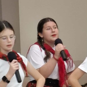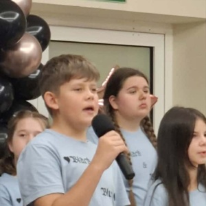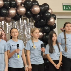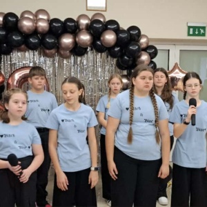 Pasjonaci muzyki z naszej szkoły z ochotą wystąpili przed dostojnymi gośćmi w sali Centrum Kultury w Radziłowie. Jako pierwsze zaprezentowały się „Jarzębinki” w koncercie piosenek ludowych. Znane i lubiane utwory folkowe przywołały wspomnienia z lat młodości i wiejskich potańcówek. Nagrodzone gromkimi brawami dziewczęta zeszły ze sceny, a tuż po nich wkroczyli artyści z Black& Blue- przygotowani przez Panią Monikę Soroko, którzy zaśpiewali utwory współczesne. Swój występ zakończyli refleksyjnym „Ale to już było” z repertuaru Maryli Rodowicz.