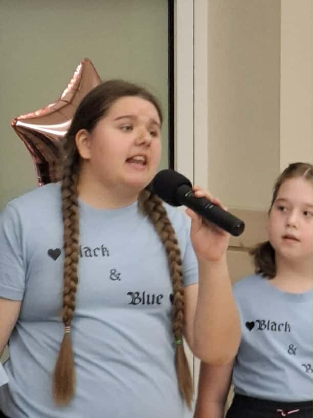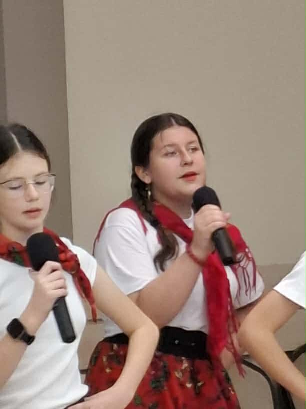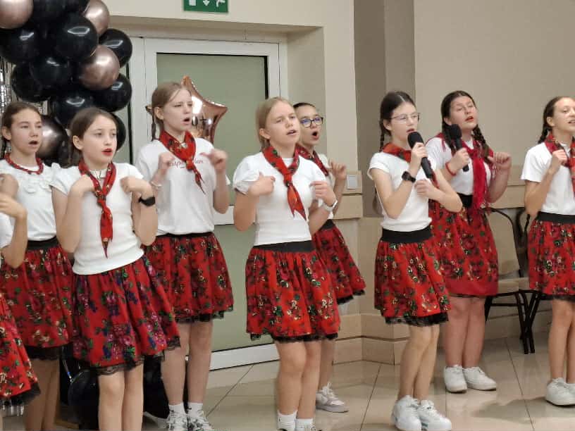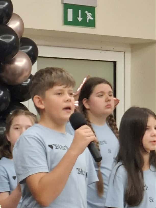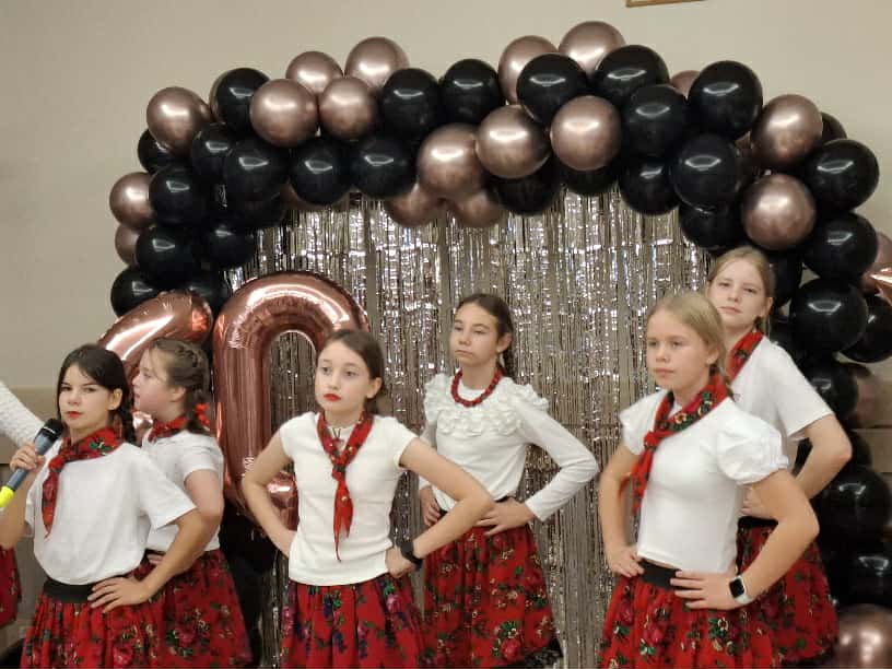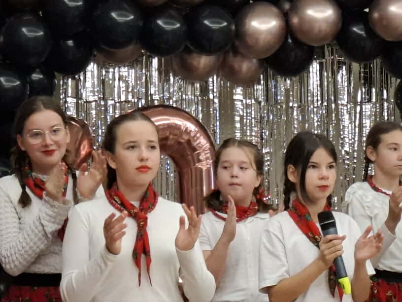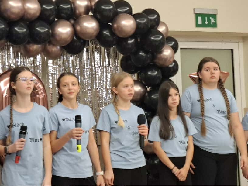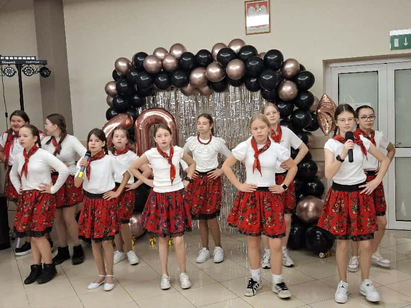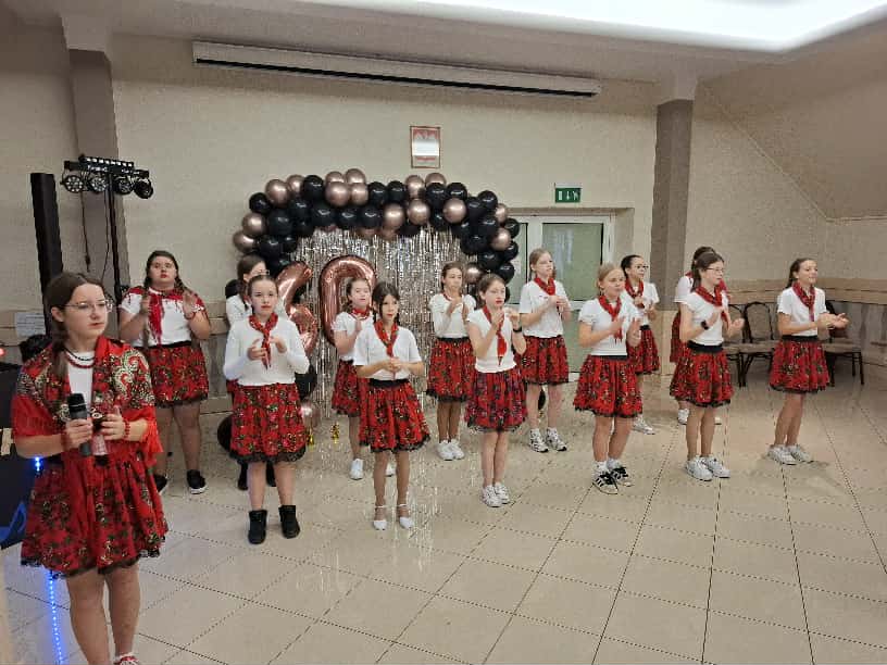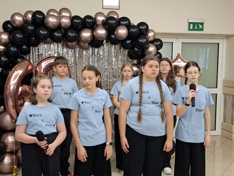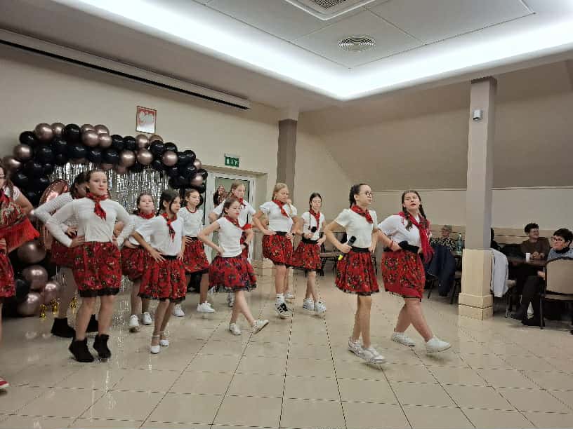 Pasjonaci muzyki z naszej szkoły z ochotą wystąpili przed dostojnymi gośćmi w sali Centrum Kultury w Radziłowie. Jako pierwsze zaprezentowały się „Jarzębinki” w koncercie piosenek ludowych. Znane i lubiane utwory folkowe przywołały wspomnienia z lat młodości i wiejskich potańcówek. Nagrodzone gromkimi brawami dziewczęta zeszły ze sceny, a tuż po nich wkroczyli artyści z Black& Blue- przygotowani przez Panią Monikę Soroko, którzy zaśpiewali utwory współczesne. Swój występ zakończyli refleksyjnym „Ale to już było” z repertuaru Maryli Rodowicz.