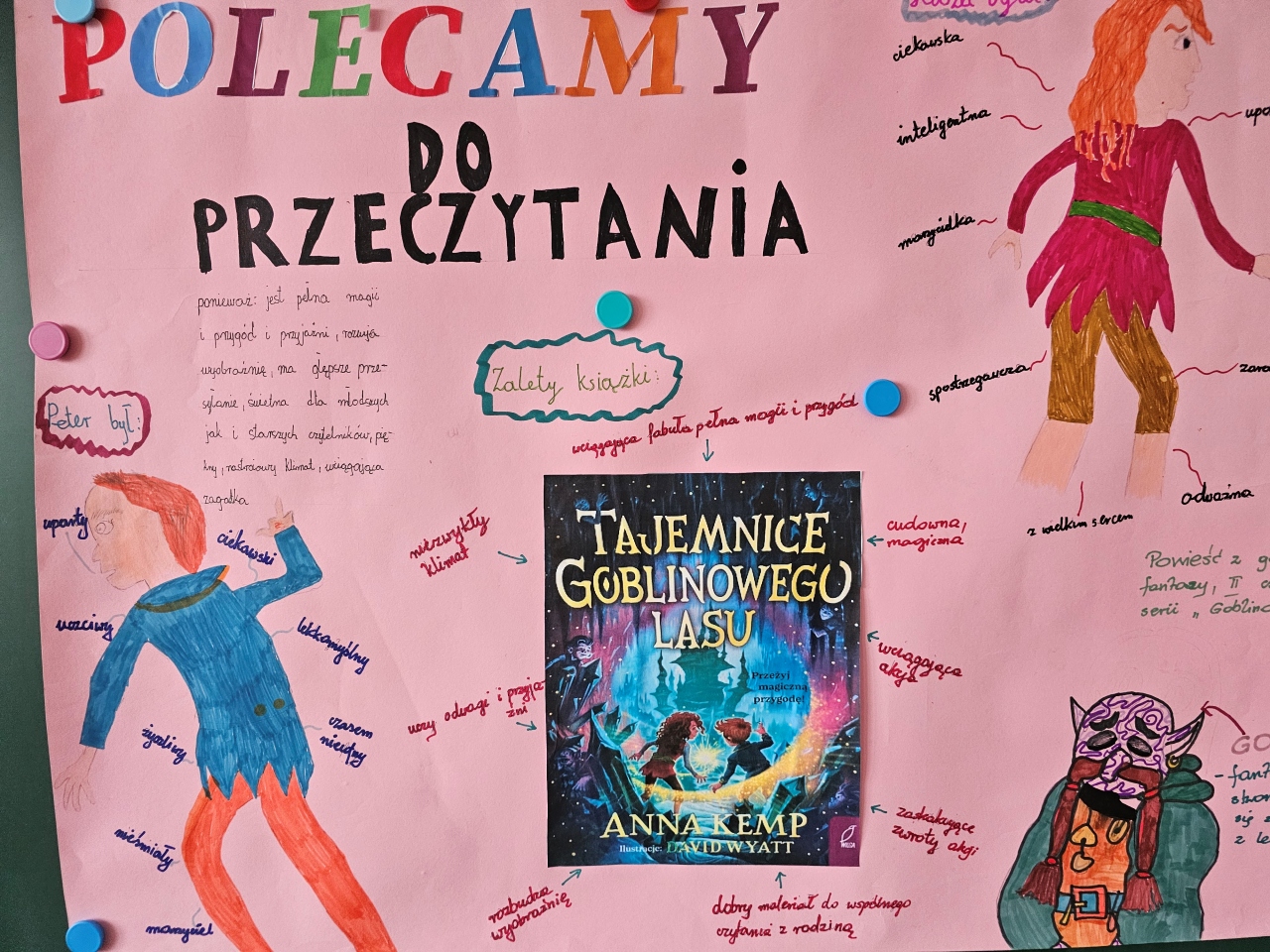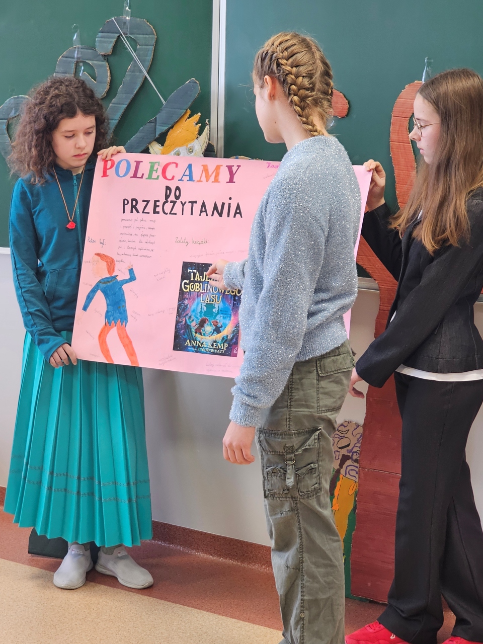 W ramach projektu podejmowane były różnorodne działania. Wszyscy uczniowie wykazali się ogromnym zaangażowaniem, kreatywnością i umiejętnością pracy zespołowej. Pracując w czteroosobowych grupach, przygotowali plakaty, komiks i karty do klasowego katalogu ciekawych książek. Zaprezentowali także przedstawienia na podstawie przygotowanych przez siebie scenariuszy, do których wykonali kostiumy, rekwizyty i piękne dekoracje. Były też quizy z pomysłowymi nagrodami. Najciekawszą z atrakcji okazała się przejażdżka wagonikiem zrobionym przez jedną z grup. Klasa V zachęcała do przeczytania następujących książek: „Mazurscy w podróży”, „Fajna ferajna”, „Tajemnice Goblinowego Lasu”, „Kłamczucha”, Tajemniczy ogród” i „Przygody Tomka Sawyera”. Efekty ich pracy można podziwiać w sali nr 32.
