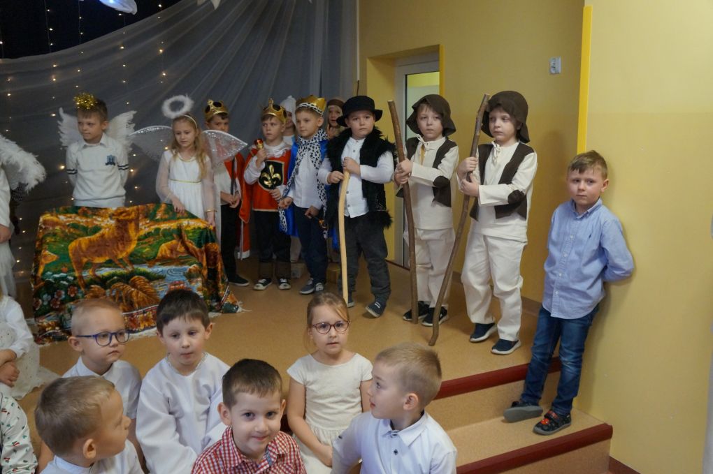 Podczas przedszkolnych jasełek na naszej scenie działo się naprawdę sporo! Aniołki pilnowały porządku, pasterze odważnie ruszyli do Betlejem, a Trzej Królowie niemal bezbłędnie trafili do żłóbka. Maryja i Józef czuwali nad wszystkim z anielskim spokojem, a mali artyści dali z siebie 100%… a nawet trochę więcej!