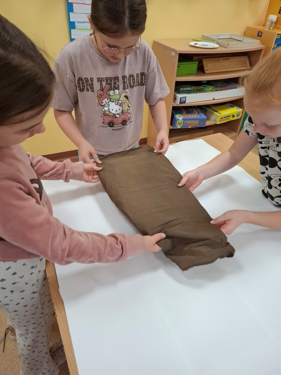 Na edukacji polonistycznej uczniowie poznali bohaterów i ich przygody. Czytając samodzielnie książkę w domu dzieci dowiedziały się jak dawniej ich rówieśnicy spędzali wspólnie wolny czas. Podsumowaniem projektu było wykonanie plakatu, który został zaprezentowany na gazetce w sali nr 19.