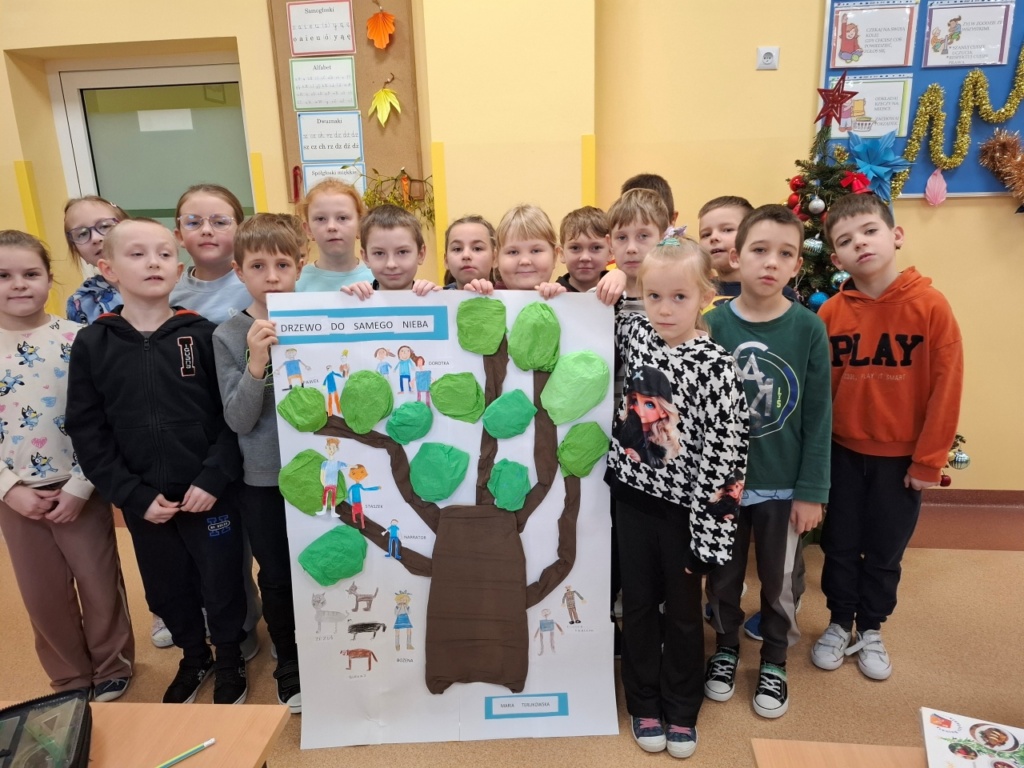 Klasa 2b zrealizowała projekt czytelniczy ”Moja ulubiona książka”. Po odwiedzinach w bibliotece szkolnej do realizacji projektu wybraliśmy książkę Marii Terlikowskiej „Drzewo do samego nieba”.