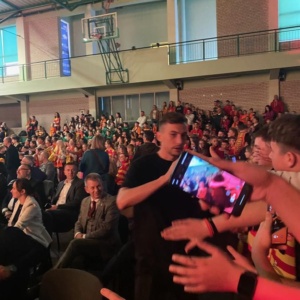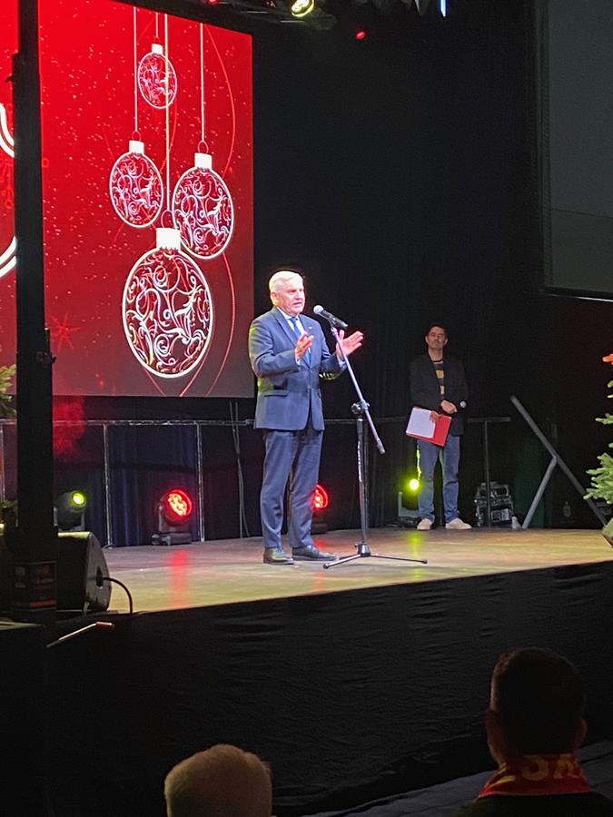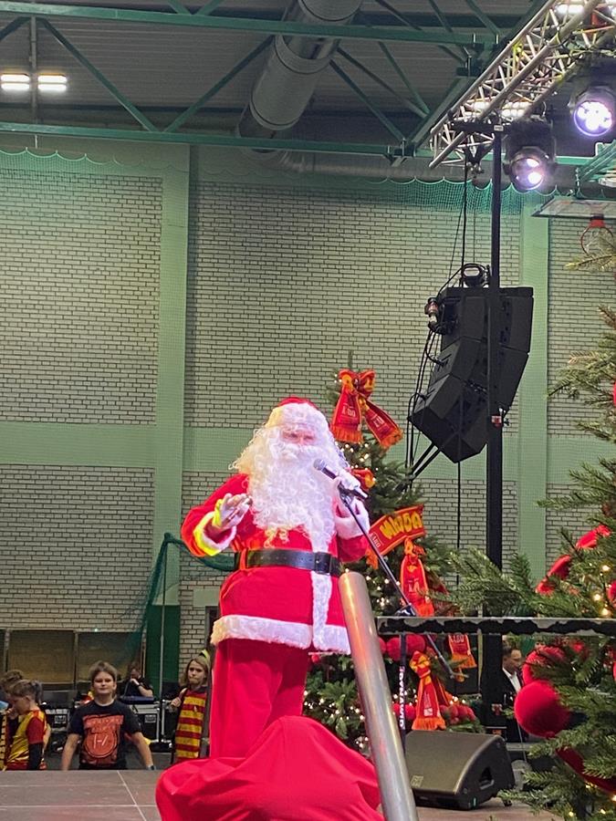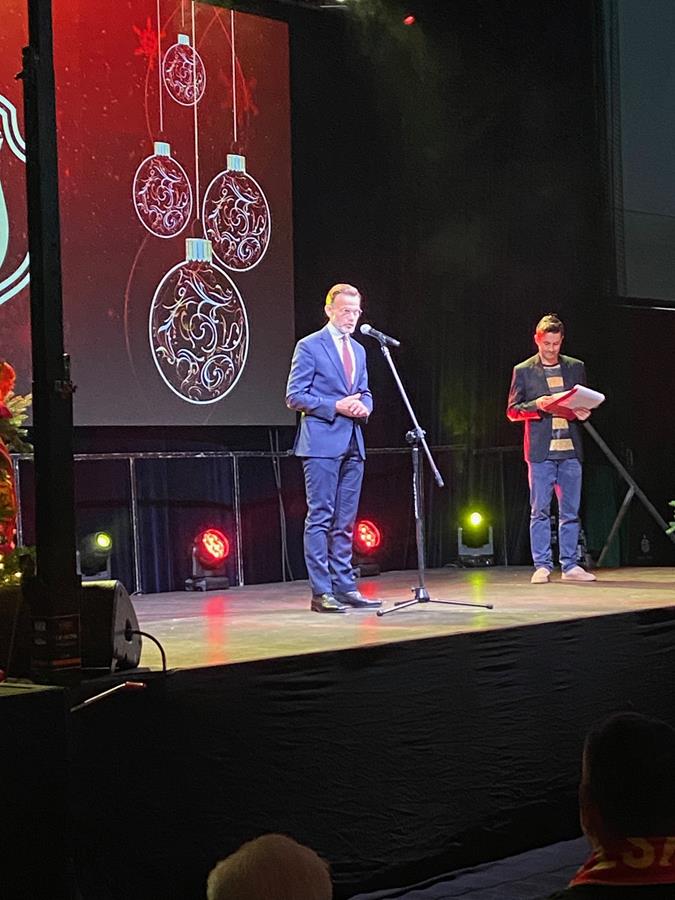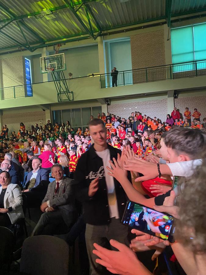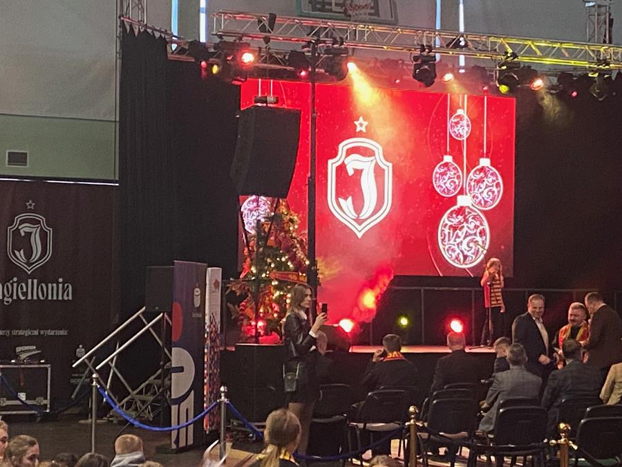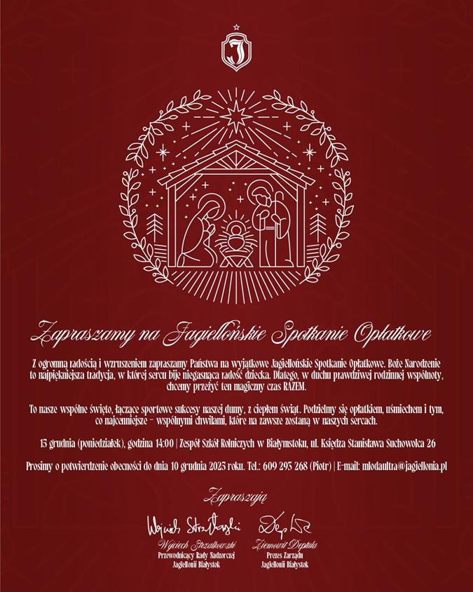 Podobnie jak rok temu nasza szkoła skorzystała z zaproszenie do udziału w wyjątkowym, jedynym w swoim rodzaju wydarzeniu, które powoli wpisuje się w serca naszej sportowej społeczności. Opłatek Jagielloński – „To nie jest zwykłe spotkanie. To moment, w którym bijące serce Podlasia łączy się w przedświątecznym uniesieniu, tworząc niezapomniane wspomnienia”. W Opłatku Jagiellońskim wzięła udział 11 uczniów z naszej szkoły, ubranych w żółto – czerwone barwy i wyposażonych w klubowe szaliki. Wspólnie z kolegami i koleżankami z innych szkół mogliśmy zaśpiewać kolędy, Hymn Jagiellonii oraz  piosenkę Młodej Ultry:  https://youtu.be/JFHNiIE0Uhs Niezapomnianym przeżyciem był dla nas tak bliski kontakt z naszymi idolami, możliwość zdobycia autografu i oczywiście prezent w postaci piłki od Świętego Mikołaja. Po małym poczęstunku przygotowanym przez organizatorów, pełni wrażeń wróciliśmy do Radziłowa. Do zobaczenia za rok.