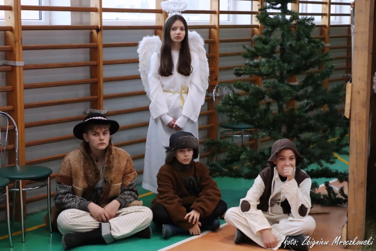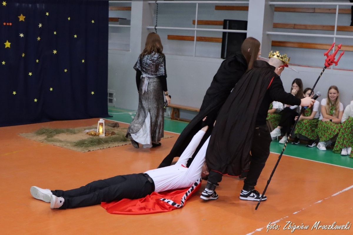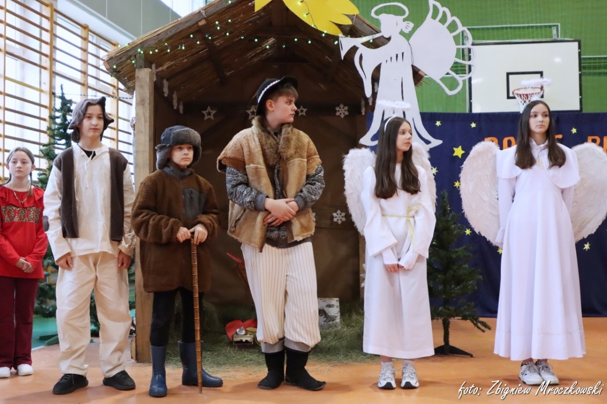 Przedświąteczny piątek w naszej szkole to czas wzruszeń, życzeń, wspólnego kolędowania i klasowych spotkań przy wigilijnych stołach. Tę uroczystą atmosferę rozpoczynają corocznie jasełka bożonarodzeniowe przypominające ważne dla nas chrześcijan wydarzenia sprzed ponad dwóch tysięcy lat. W tym roku gospodarzami jasełek były klasy VIIIB, VIIB oraz „Jarzębinki”.