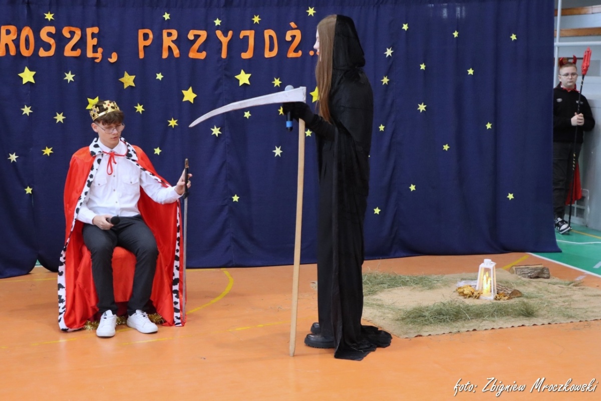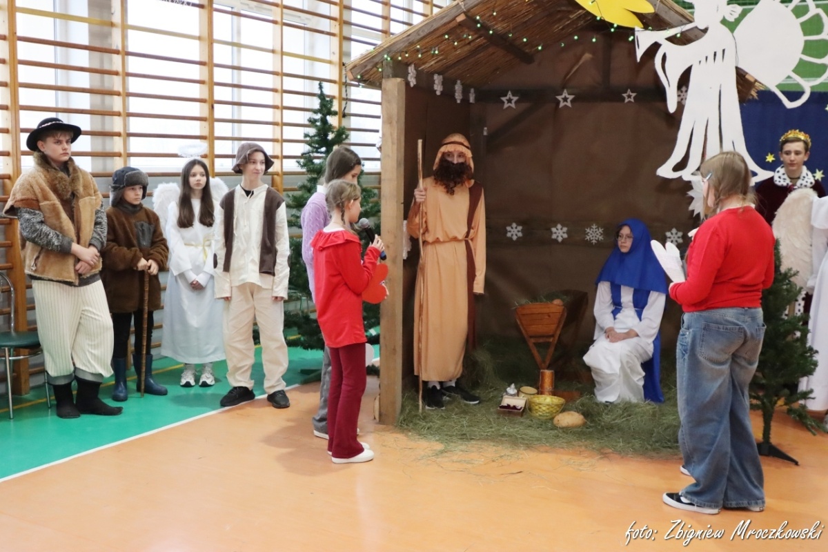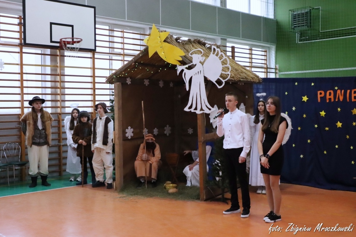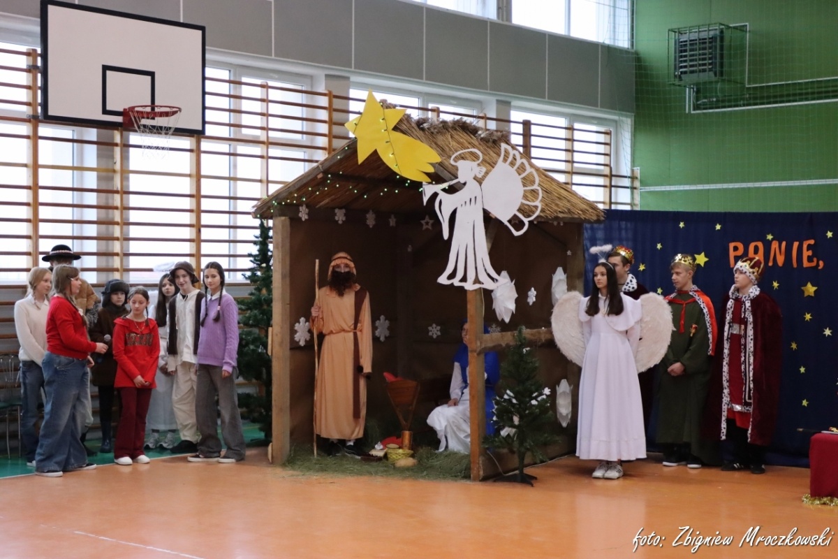 Przedświąteczny piątek w naszej szkole to czas wzruszeń, życzeń, wspólnego kolędowania i klasowych spotkań przy wigilijnych stołach. Tę uroczystą atmosferę rozpoczynają corocznie jasełka bożonarodzeniowe przypominające ważne dla nas chrześcijan wydarzenia sprzed ponad dwóch tysięcy lat. W tym roku gospodarzami jasełek były klasy VIIIB, VIIB oraz „Jarzębinki”.