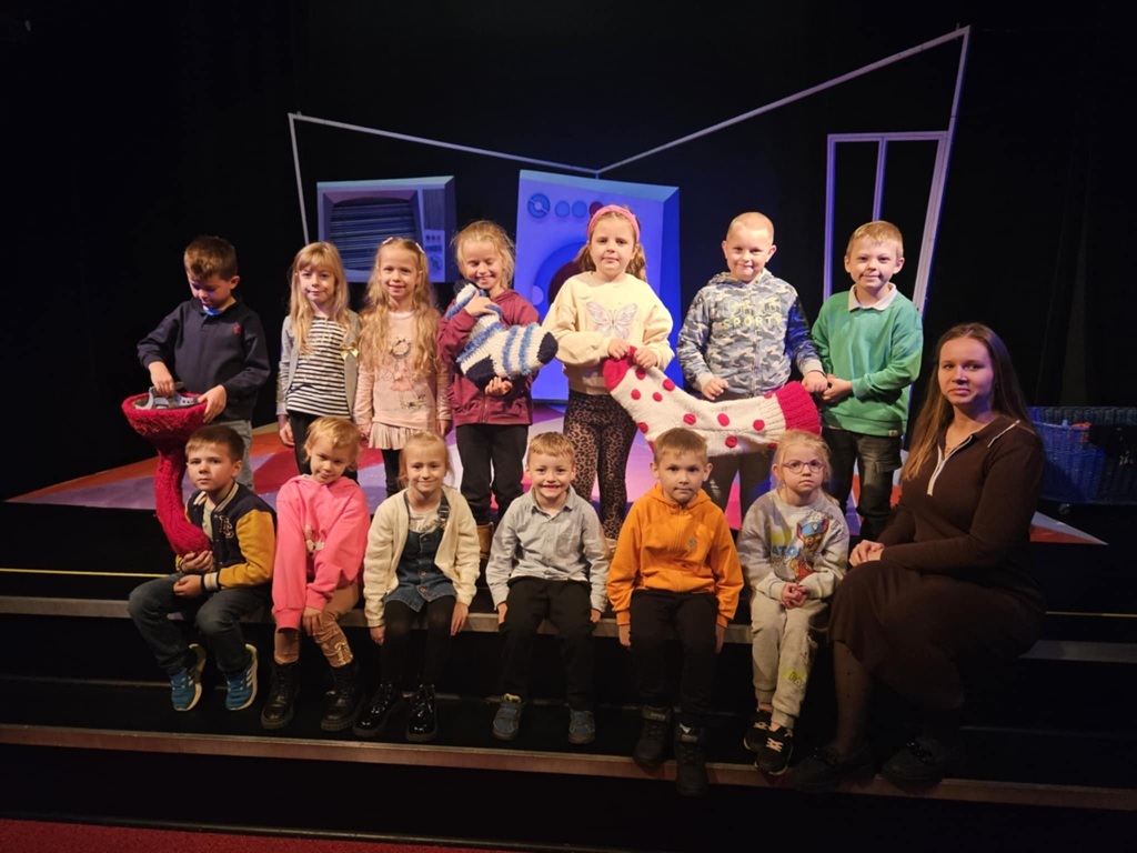 Ale mieliśmy super wyjazd! W czwartek 6 listopada wybraliśmy się sporą gromadką do Teatru Lalki i Aktora w Łomży na wspaniały spektakl pt. “Zagubione skarpetki”. Muzyka, Światła, Aktorzy iiiii…. Skarpetki i ich wspaniałe przygody. To wszystko powodowało, że nasze zaciekawienie widowiskiem nie malało. Byliśmy zachwyceni. Spektakl wzbudzał w Nas wiele pozytywnych emocji, o czym świadczyły nasze uśmiechy i komentarze po zakończonym przedstawieniu.