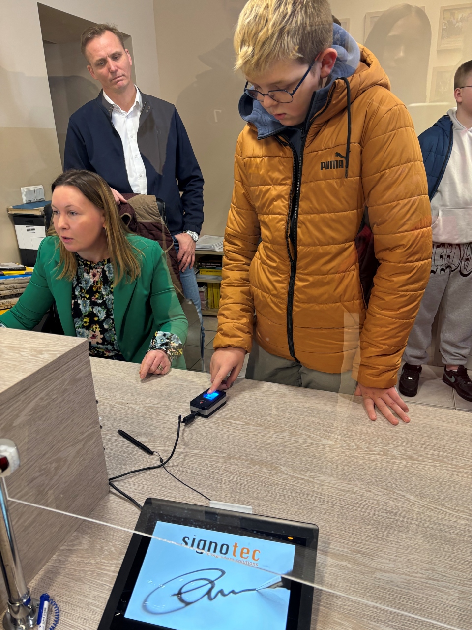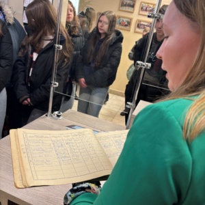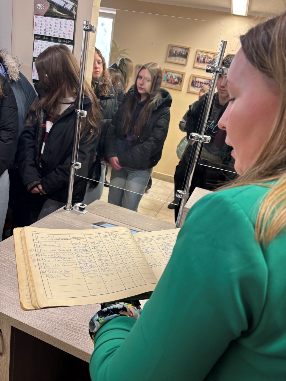 6 lutego uczniowie klasy VIII ab odwiedzili Urząd Gminy w Radziłowie. Spotkanie rozpoczęło się od wizyty w Urzędzie Stanu Cywilnego. Młodzież miała okazję dowiedzieć się, jakie czynności są wykonywane w USC – od rejestracji urodzeń i zgonów, po zawieranie małżeństw oraz prowadzenie dokumentacji stanu cywilnego. Kierownik urzędu, pani Iwona Chełmińska opowiedziała również o obowiązujących procedurach dotyczący wydawania dowodów osobistych.
