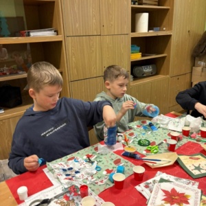 Na Święta Bożego Narodzenia czekamy chyba wszyscy. W ostatnich latach coraz większą popularnością cieszą się świąteczne warsztaty, dlatego uczniowie klasy 3a, pod okiem rodziców, tworzyli ozdoby według własnych pomysłów, korzystając z różnorodnych materiałów. Była to niezwykle przyjemna i twórcza praca, która wprowadziła wszystkich w świąteczny klimat. Zdobyta wiedza z pewnością przyda się również w domu, gdzie dzieci wspólnie z rodziną stworzą kolejne bożonarodzeniowe dekoracje. Jesteśmy przekonani, że sprawiło im to ogromną frajdę!