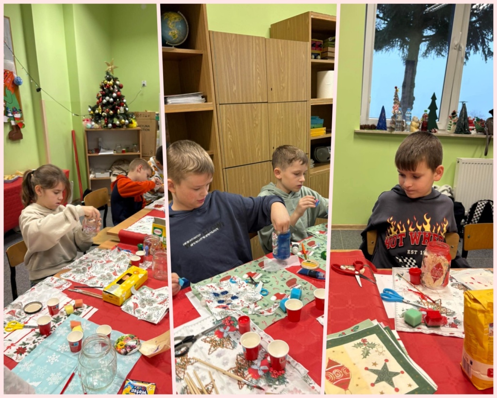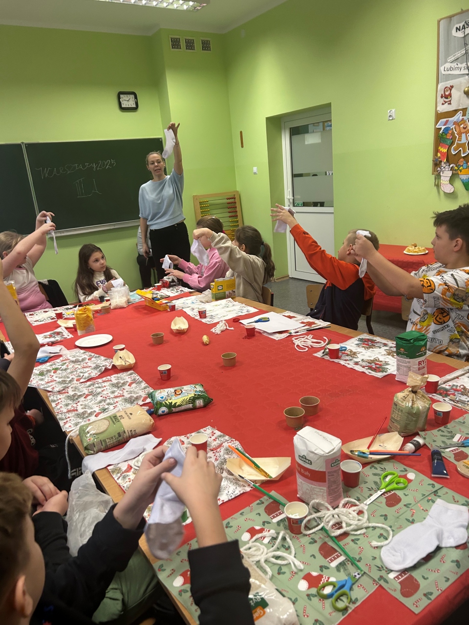 Na Święta Bożego Narodzenia czekamy chyba wszyscy. W ostatnich latach coraz większą popularnością cieszą się świąteczne warsztaty, dlatego uczniowie klasy 3a, pod okiem rodziców, tworzyli ozdoby według własnych pomysłów, korzystając z różnorodnych materiałów. Była to niezwykle przyjemna i twórcza praca, która wprowadziła wszystkich w świąteczny klimat. Zdobyta wiedza z pewnością przyda się również w domu, gdzie dzieci wspólnie z rodziną stworzą kolejne bożonarodzeniowe dekoracje. Jesteśmy przekonani, że sprawiło im to ogromną frajdę!