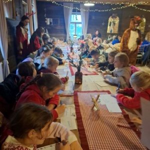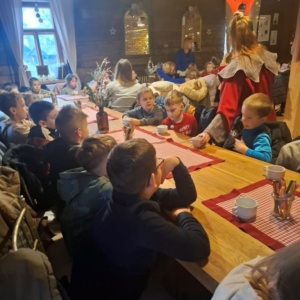Dzieci z klasy 1 a i 1 b uczestniczyły w wyjątkowej wyprawie do magicznej Wioski Świętego Mikołaja. Po przyjeździe przywitały nas Mikołajkowe Elfy, które przygotowały wspaniałe atrakcje. Elfy pomogły napisać listy do Mikołaja, które wrzuciliśmy do specjalnej skrzynki. Był też czas na wypicie świątecznej herbatki, pieczenie pierników oraz wspólne zabawy.