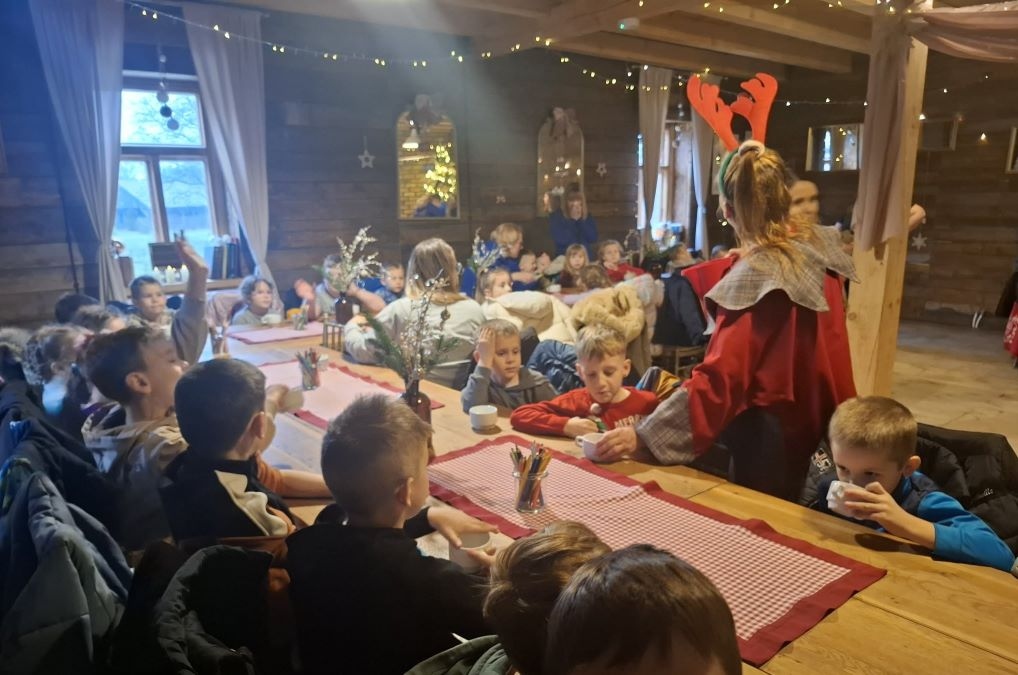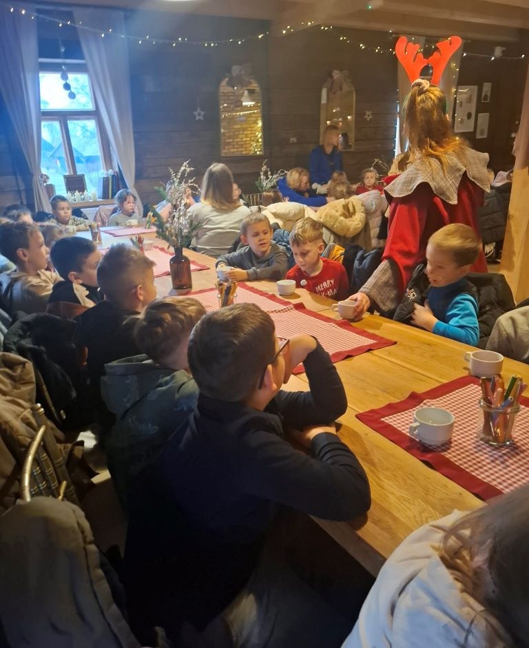 Dzieci z klasy 1 a i 1 b uczestniczyły w wyjątkowej wyprawie do magicznej Wioski Świętego Mikołaja. Po przyjeździe przywitały nas Mikołajkowe Elfy, które przygotowały wspaniałe atrakcje. Elfy pomogły napisać listy do Mikołaja, które wrzuciliśmy do specjalnej skrzynki. Był też czas na wypicie świątecznej herbatki, pieczenie pierników oraz wspólne zabawy.